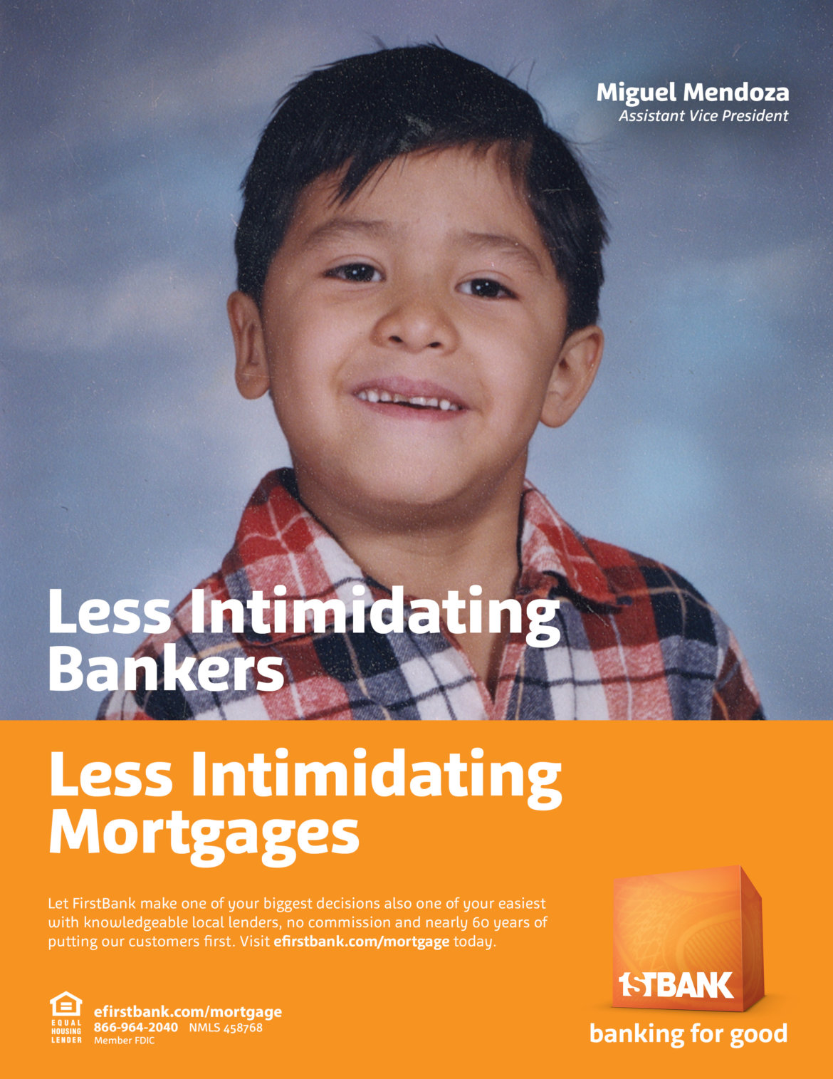 Buying a home can be very intimidating, and FirstBank wants to make the process more personal, relatable, and easy. FirstBank suspects an old photo of a smiling child with a few missing teeth or donning a princess crown – who just happens to be your banker — will bring a warm and comfortable feeling to customers as they look for a mortgage.