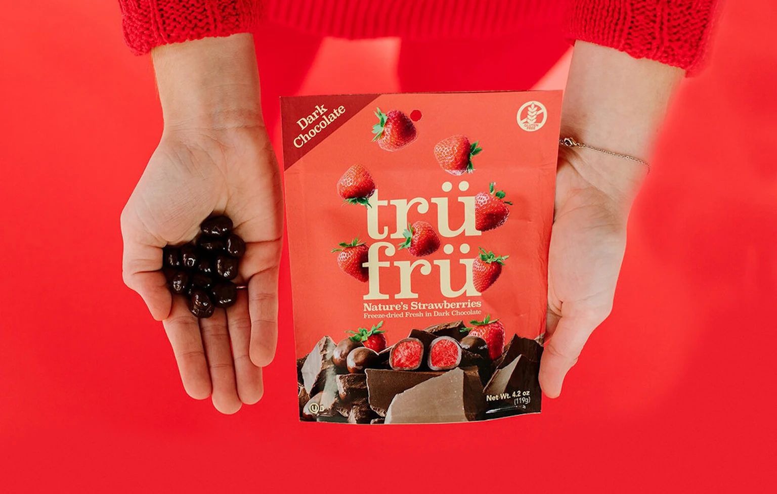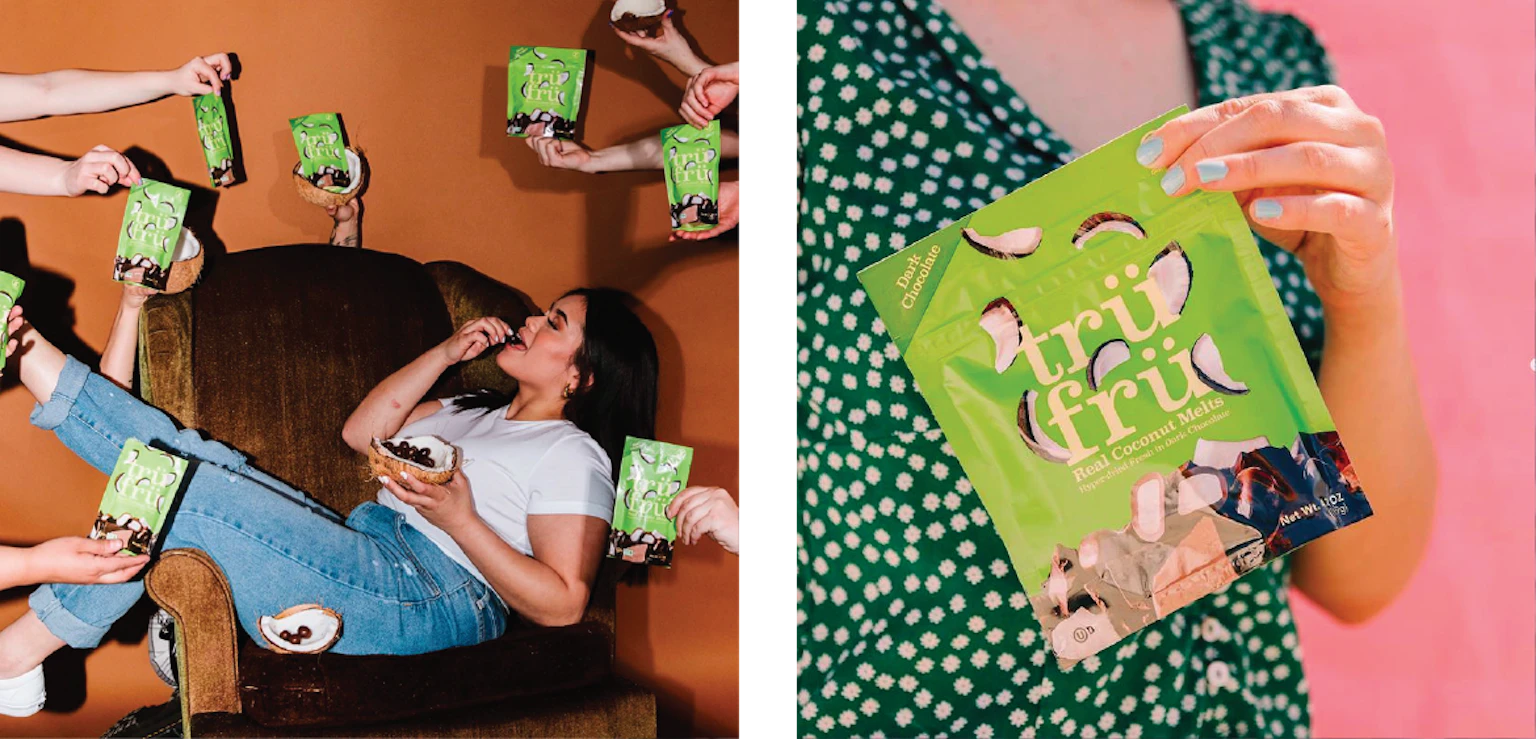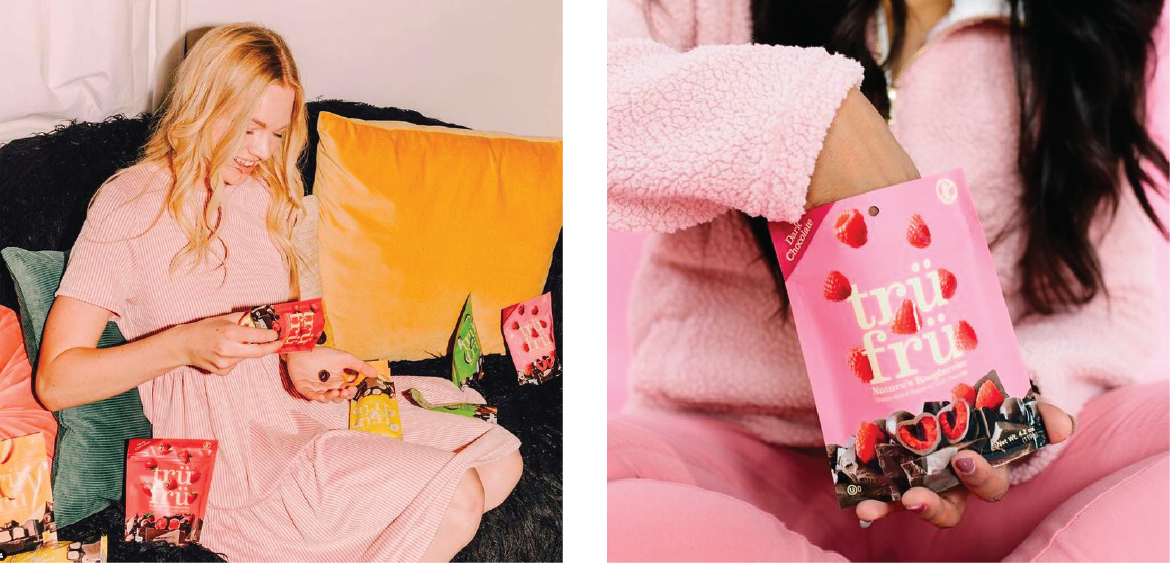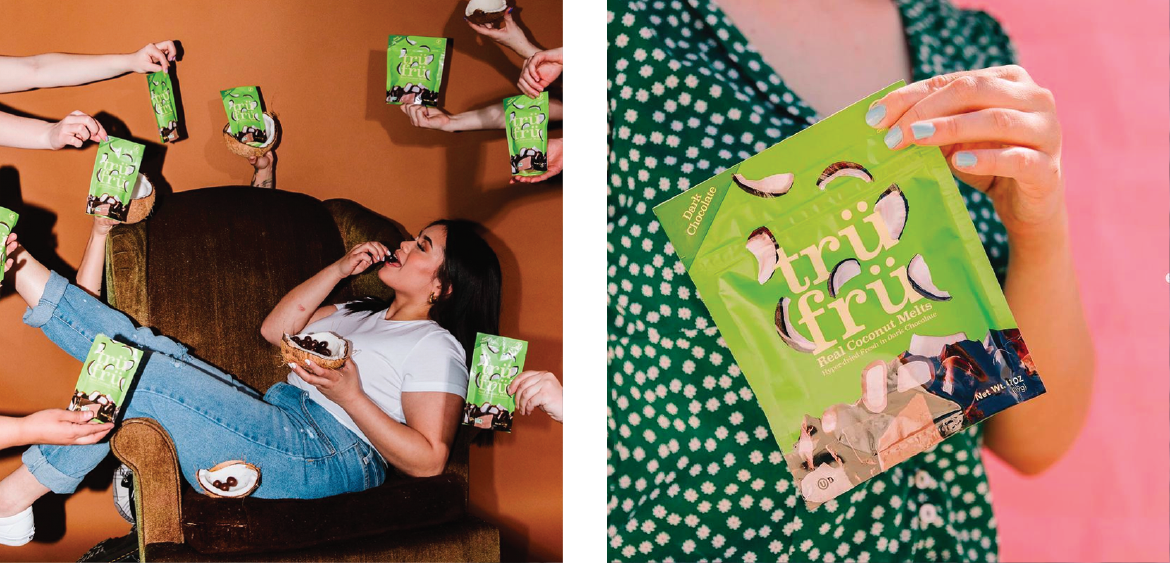 As one of the scarce brands in the category that uses 100% real fruit, Tru Fru needed its packaging to match the quality and purity of its top-shelf chocolate-coated fruit snacks. We worked with Tru Fru to develop a package design that clearly defined their product and place in the novelty category while dialing up taste appeal by championing the fresh fruit itself. Wait, True. Fruit. Tru Fru. I get it now.